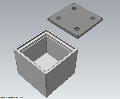 The two Solid Waste UHPC Containers have identical external features and dimensions, only the internal cavity is different. The Wet Waste UHPC Container has the same external dimensions but is distinguished by an additional port in the lid and, again, has a different cavity configuration. The wet waste variant can also be fitted with a metal liner, (illustrations and photos are found at the end of this article).